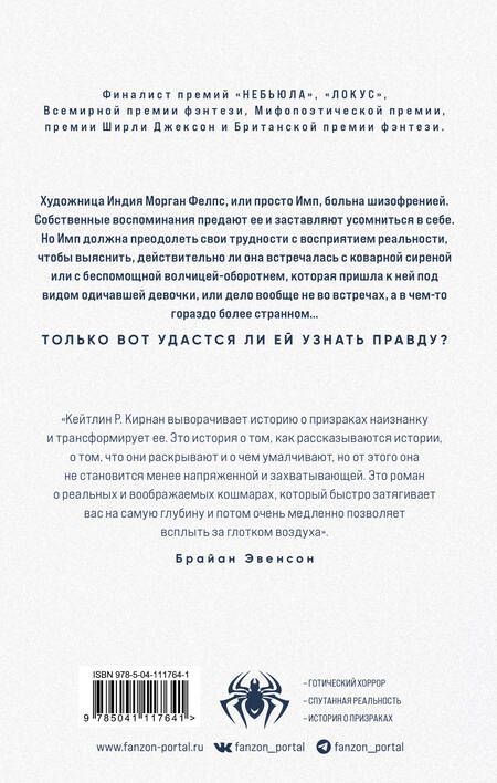 "Кейтлин Р. Кирнан выворачивает историю о призраках наизнанку и трансформирует ее. Это история о том, как рассказываются истории, о том, что они раскрывают и о чем умалчивают, но от этого она не становится менее напряженной и захватывающей. Это роман о реальных и воображаемых кошмарах, который быстро затягивает вас на самую глубину и потом очень медленно позволяет всплыть за глотком воздуха". - Брайан Эвенсон