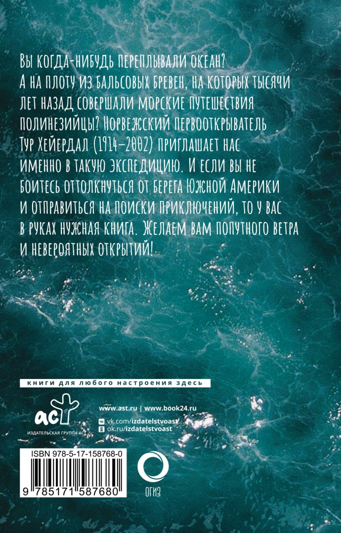 Вы когда-нибудь переплывали океан? А на плоту из бальсовых бревен, на которых тысячи лет назад совершали морские путешествия полинезийцы? Норвежский первооткрыватель Тур Хейердал (1914-2002) приглашает нас именно в такую экспедицию. И если вы не боитесь оттолкнуться от берега Южной Америки и отправиться на поиски приключений, то у вас в руках нужная книга. Желаем вам попутного ветра и невероятных открытий!